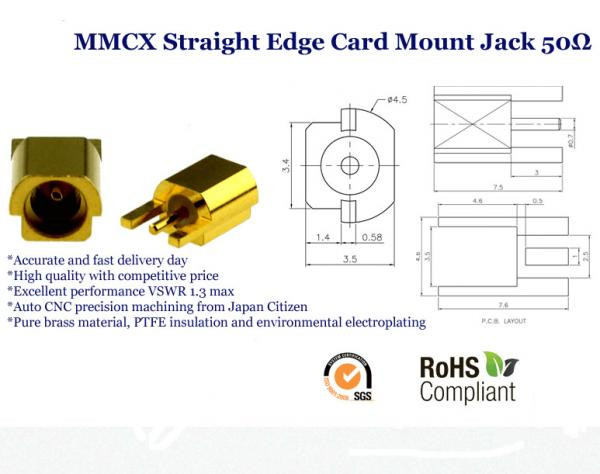 Gold Plated MMCX RF Connector Straight Edge Mount Jack Female Connector