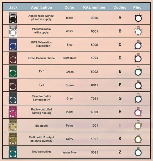 FAKRA Connectors and Cable Assemblies support applications that require a high-performing, reliable, and cost-effective RF connector. FAKRA connectors are standard SMB Connectors embedded within a special inter-locking plastic housing that uses multiple color-codes for easy identification and mating, and are designed to perform up to 4GHz at 50 Ω.